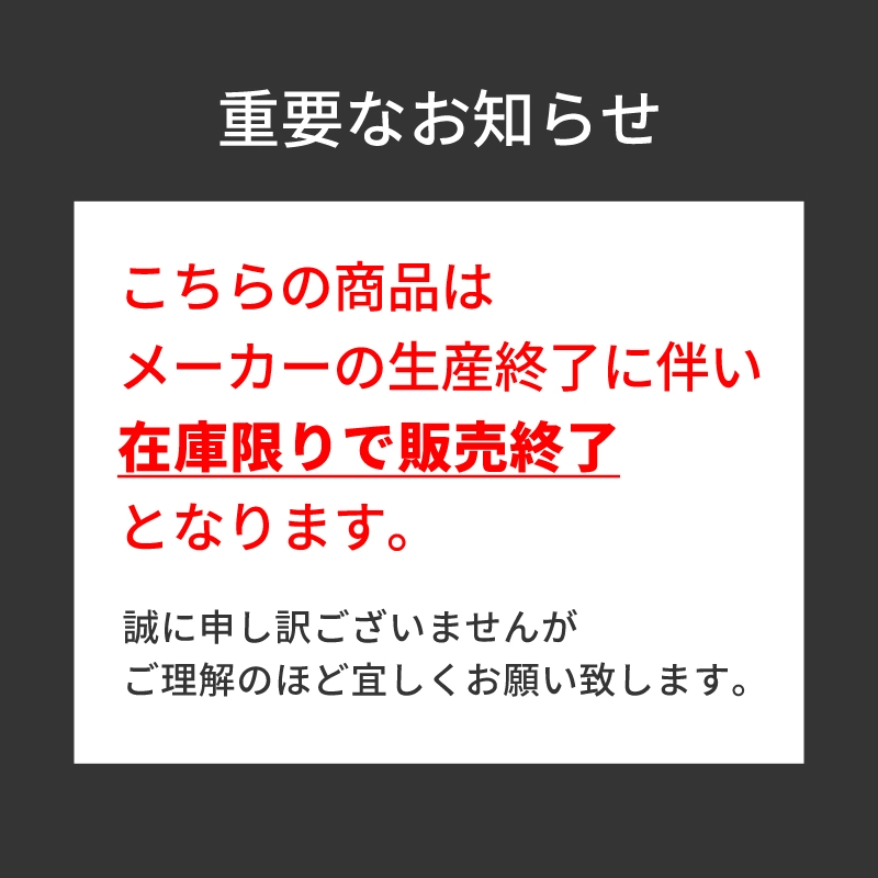 メーカーの生産終了に伴い、こちらの商品は在庫のみの販売となります。最後のロットとなるため多めに入荷はしておりますが、無くなり次第販売終了となりますのでご了承ください。